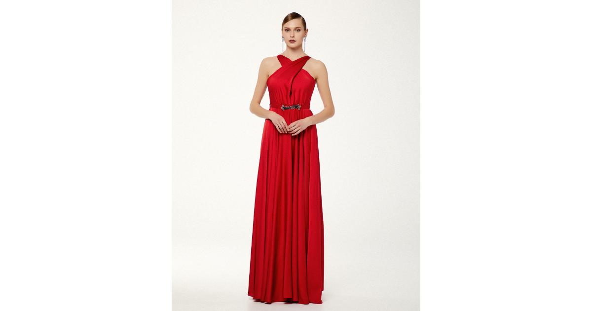 κοκτειλ φορεμα μακρυ σατεν εξωπλατο