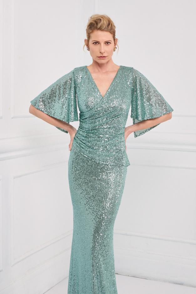 φορεμα μακρυ ολο παγιετα κρουαζε κοντο μανηκι GEORGIETTE