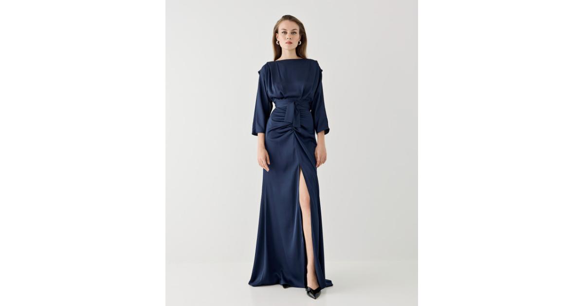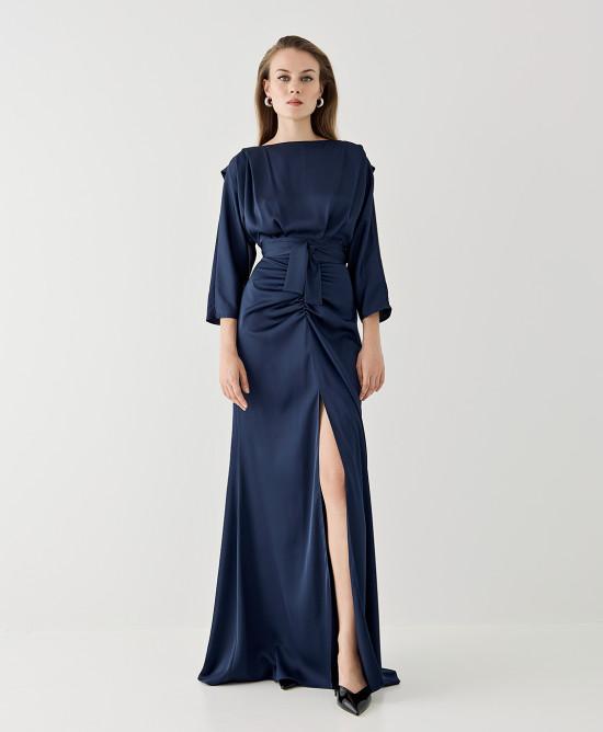 φορεμα μαξι με σουρες και σκισιμο 100%πολ