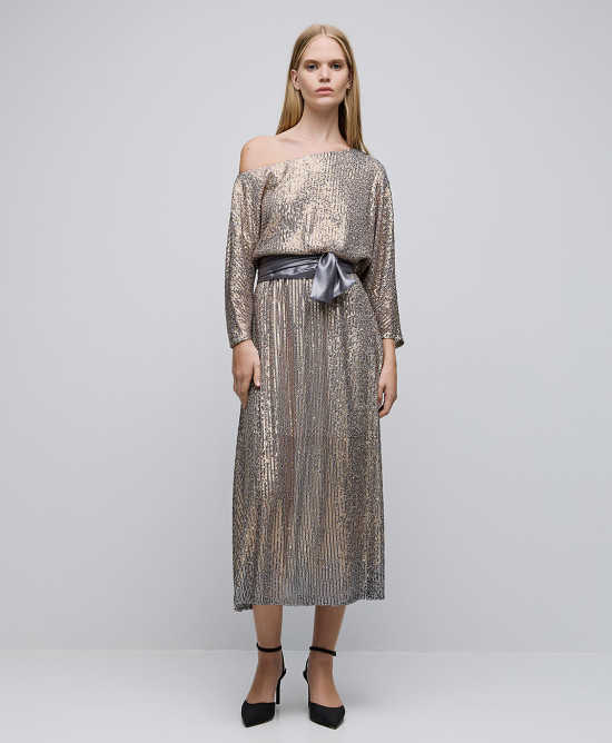 φορεμα παγιετα με ριχτο ωμο 100%πολ