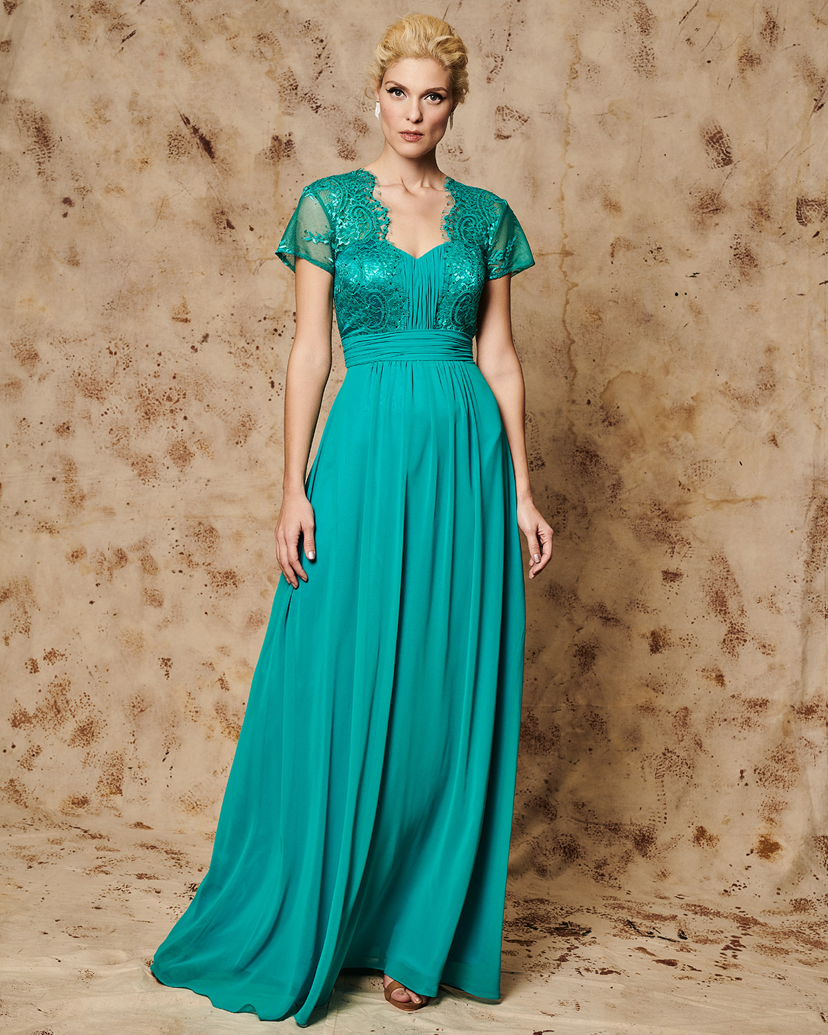 βραδυνο μακτυ φορεμα με δαντελα μπουστο και κοντο μανηκι